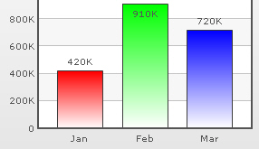 | By default, most charts in FusionCharts suite have FFFFFF as the plot gradient color. In case you wish to use solid fills for the column (or area), you have to use the plotGradientColor attribute without any color defined for it, i.e. plotGradientColor='' | ||||||||||||