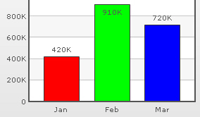 | <chart caption='Monthly Revenue' xAxisName='Month' yAxisName='Revenue' numberPrefix='$' showValues='0' useRoundEdges='1'> <set label='Jan' value='420000' /> <set label='Feb' value='910000' /> <set label='Mar' value='800000' /> <set label='Apr' value='550000' /> <set label='May' value='810000' /> <set label='Jun' value='510000' /> </chart> |
