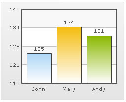 In this chart, we've manually fixed the chart lower limit, upper limit and number of divisional lines. We've also asked FusionCharts not to automatically adjust divisional lines. Now, if you see the chart, you'll find that FusionCharts has truncated decimals from y-axis values, as it couldn't find any other decimal values on the chart. You can, however, opt to just show decimals on y-axis values in this case (when adjustDiv is false) using yAxisValueDecimals attribute. e.g., <chart yAxisMinValue='115' yAxisMaxValue='140' adjustDiv='0' numDivLines='3' yAxisValueDecimals='2' decimals='0' >. When you now see the chart, you'll get 2 decimal places on y-axis values. But, the other numbers on chart would still have 0 decimal places. |