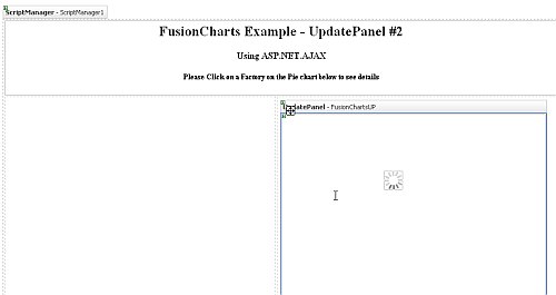 | Here, we put only one UpdatePanel i.e. FusionChartsUP that will load up the chart. The HTML code for this remains the same as the previous example. The left part will contain the Pie chart that will load up once, when the page is loaded first. But we have an added Javascript to add in this page : |